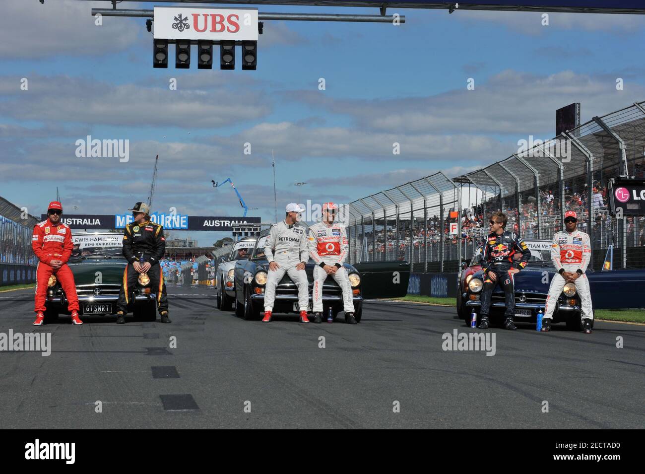 Formel 1 F1 Grosser Preis Von Australien 2012 Albert Park Grand Prix Circuit Melbourne Australien 18 3 12 L R Ferrari Fernando Alonso Lotus S Kimi Raikkonen Mercedes Michael Schumacher Mclaren S Jenson